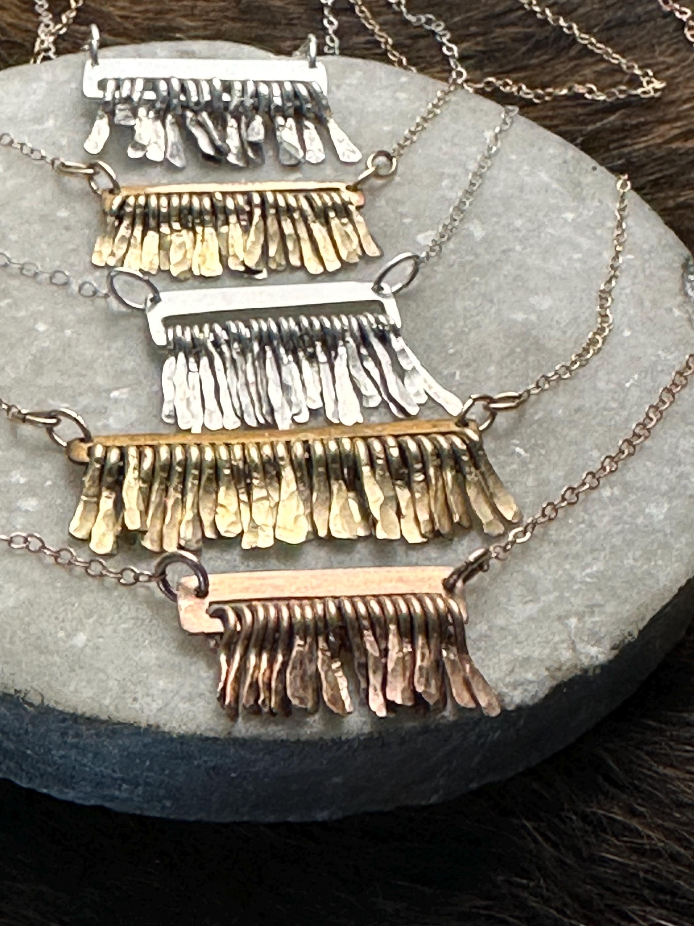 Gold Filled, Rose Gold or Sterling Silver Bar necklaces with Fringe