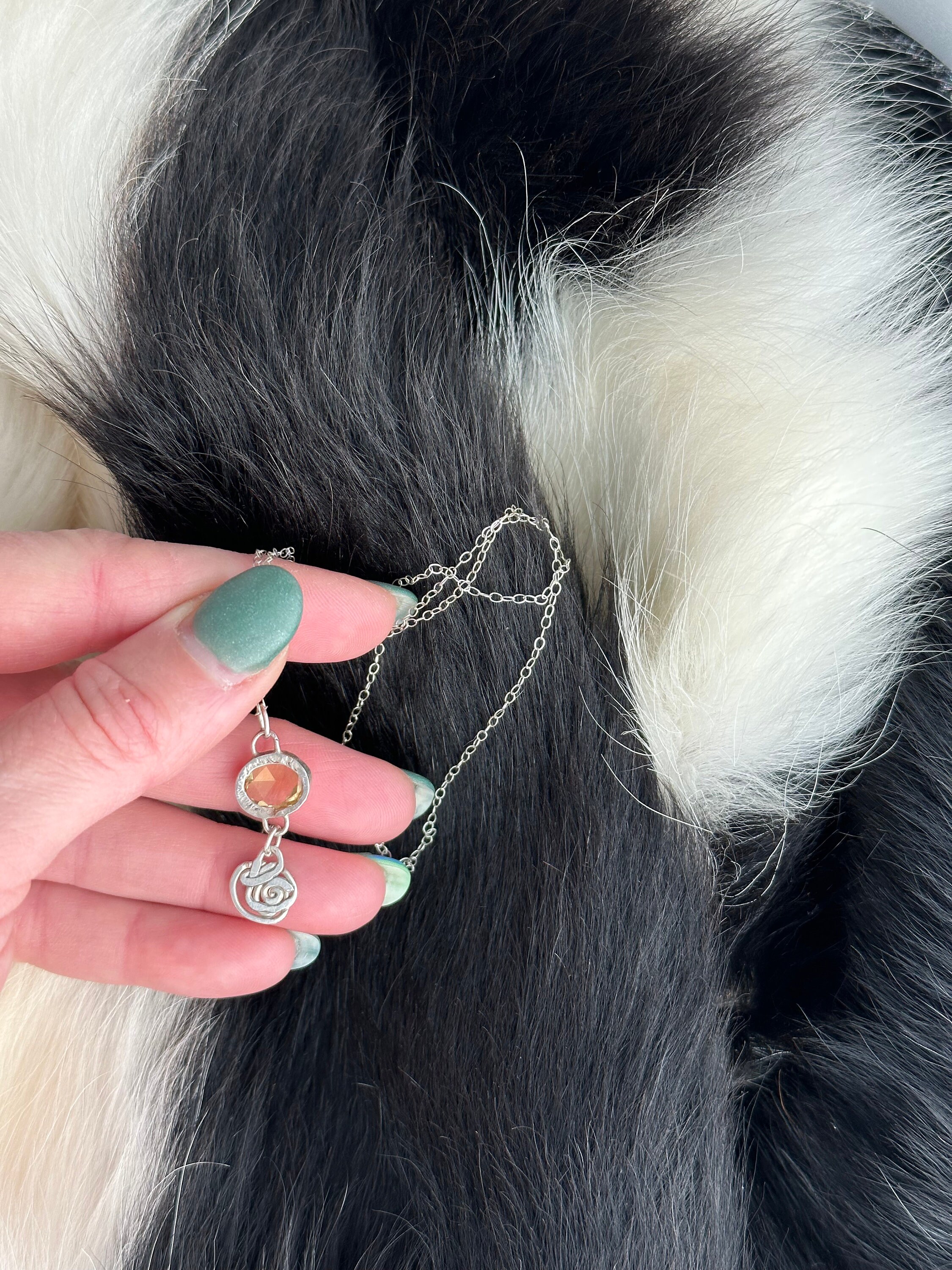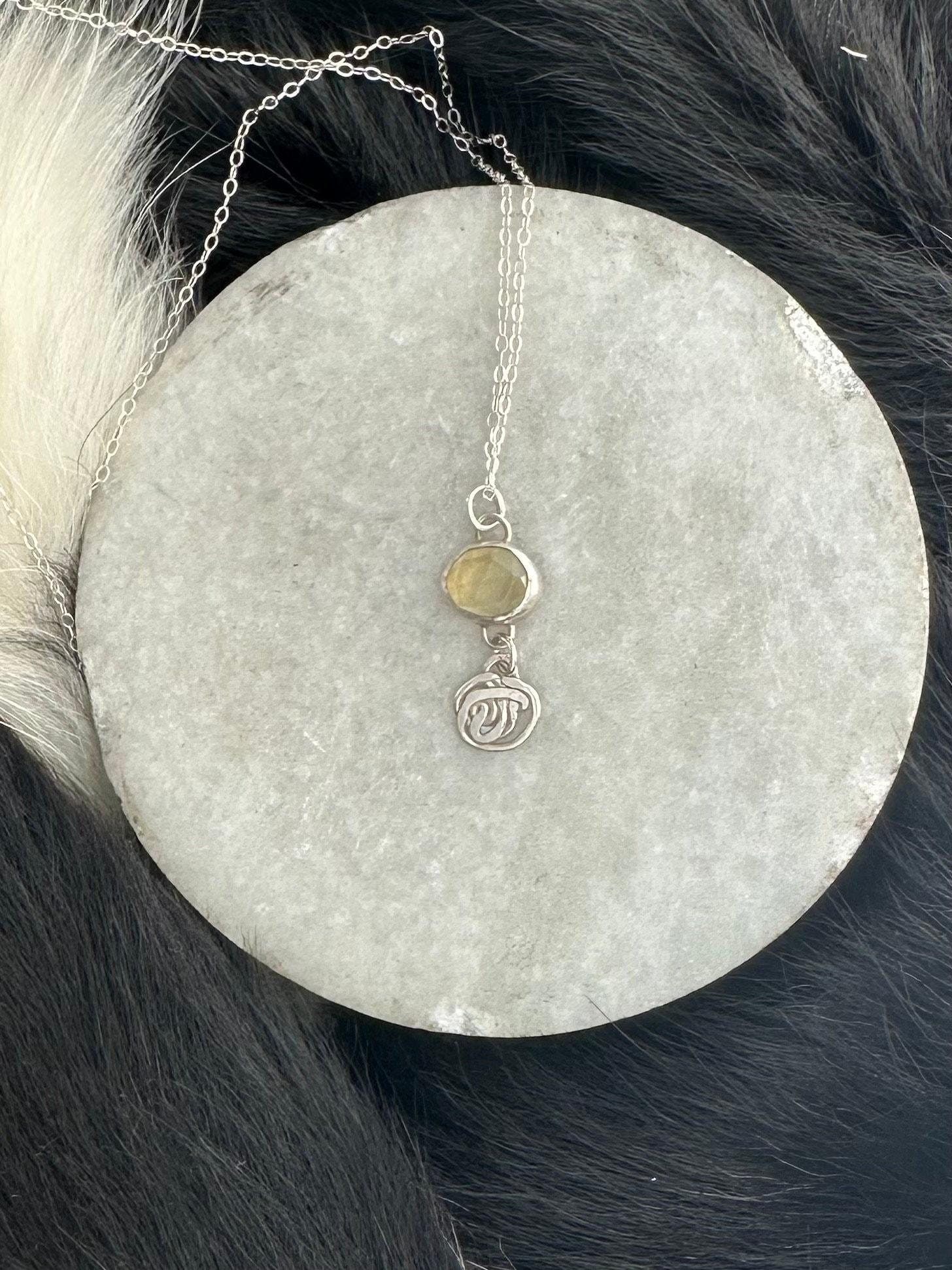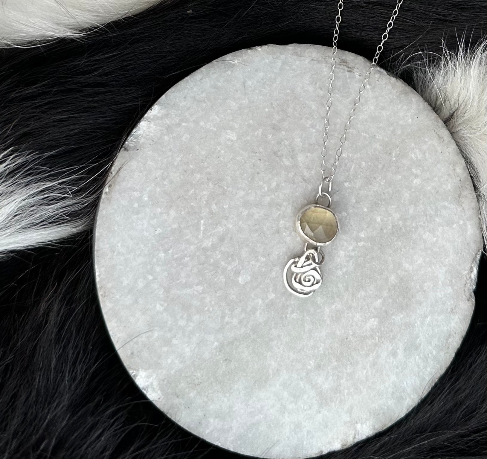 Rosa necklace pendant consists of a set stone and a sculpted silver shape that resembles an abstract rose, hence the name.