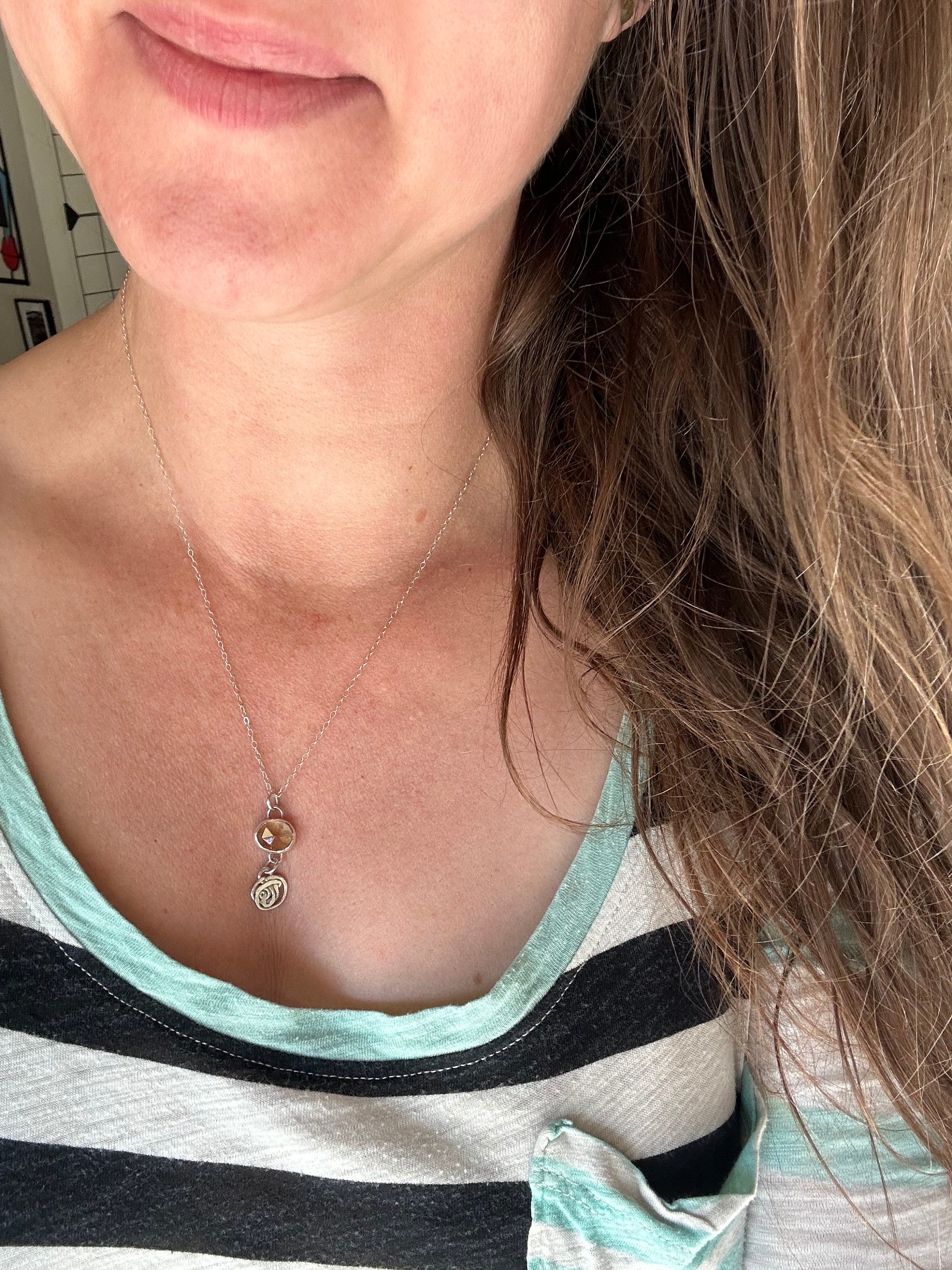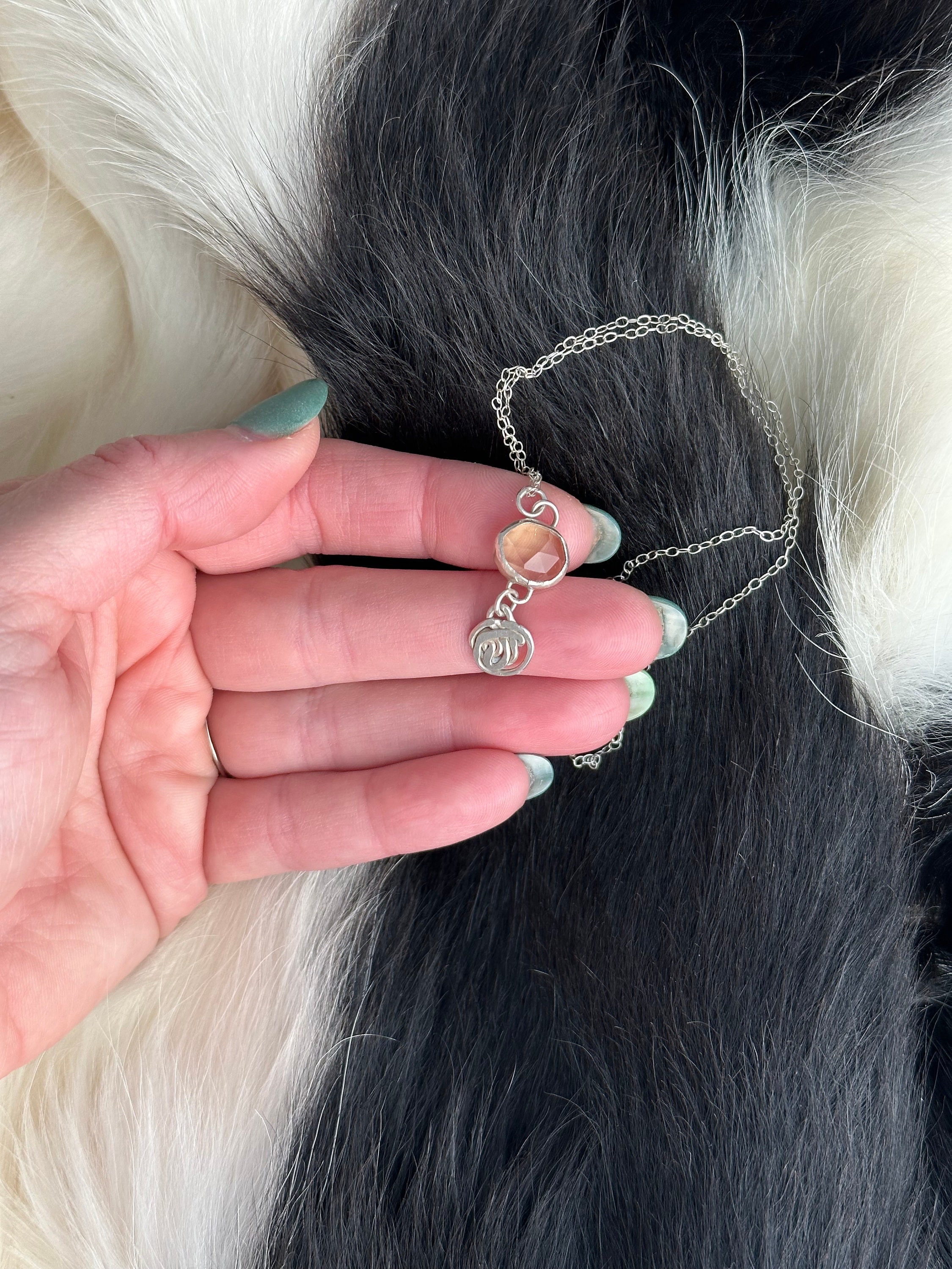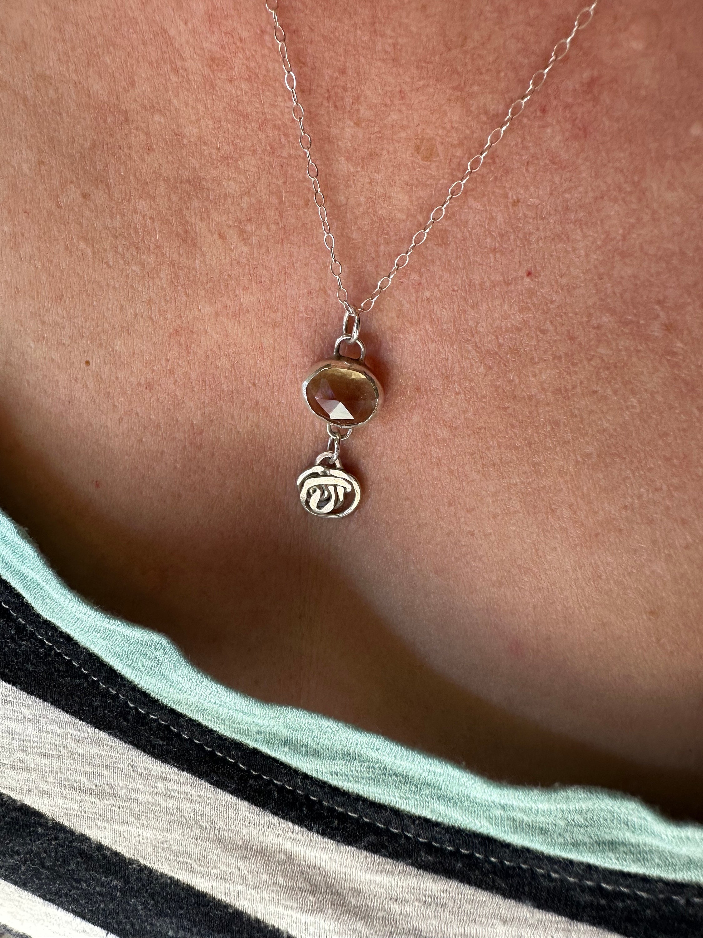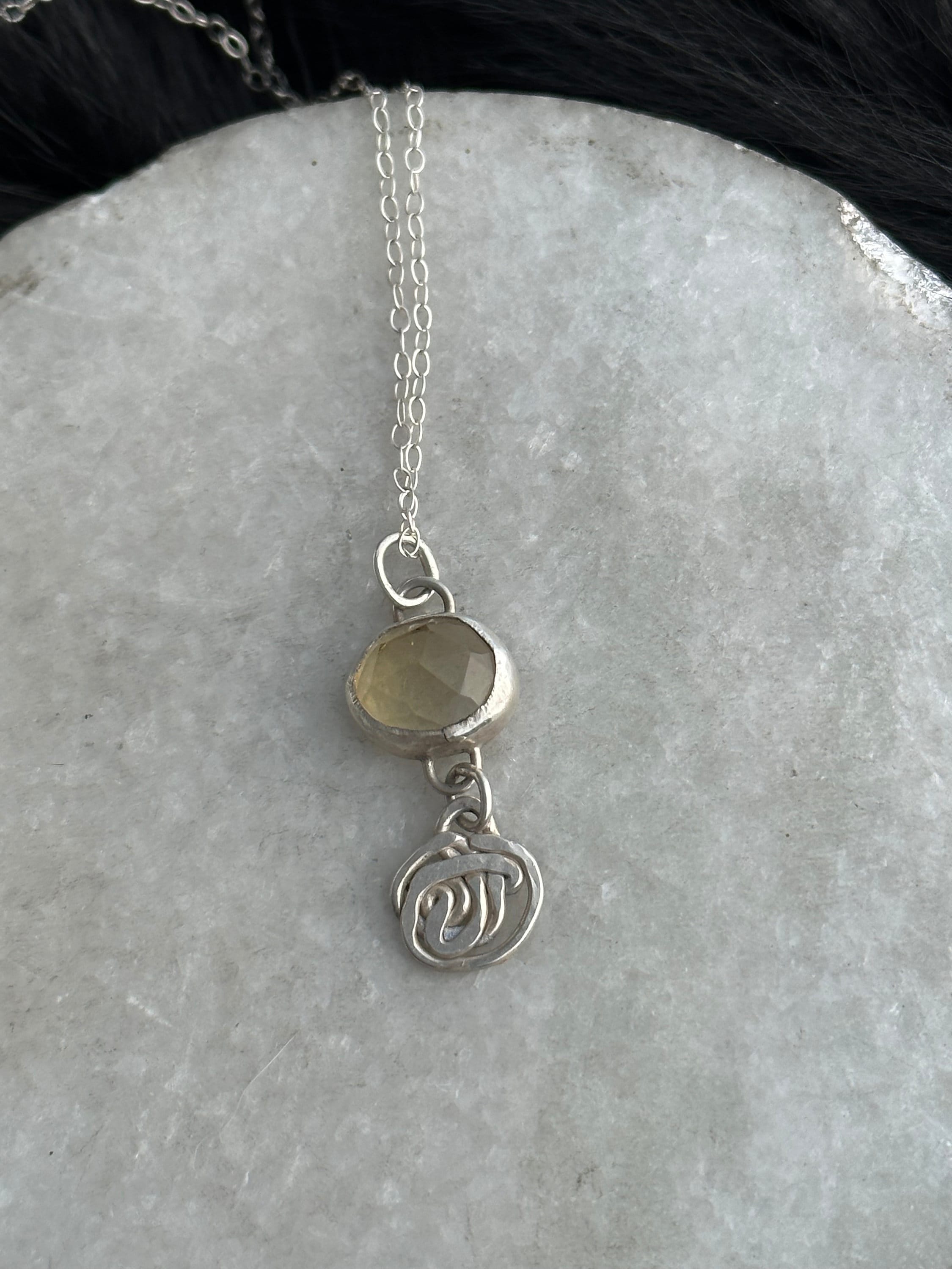 Rosa necklace pendant consists of a set stone and a sculpted silver shape that resembles an abstract rose, hence the name.