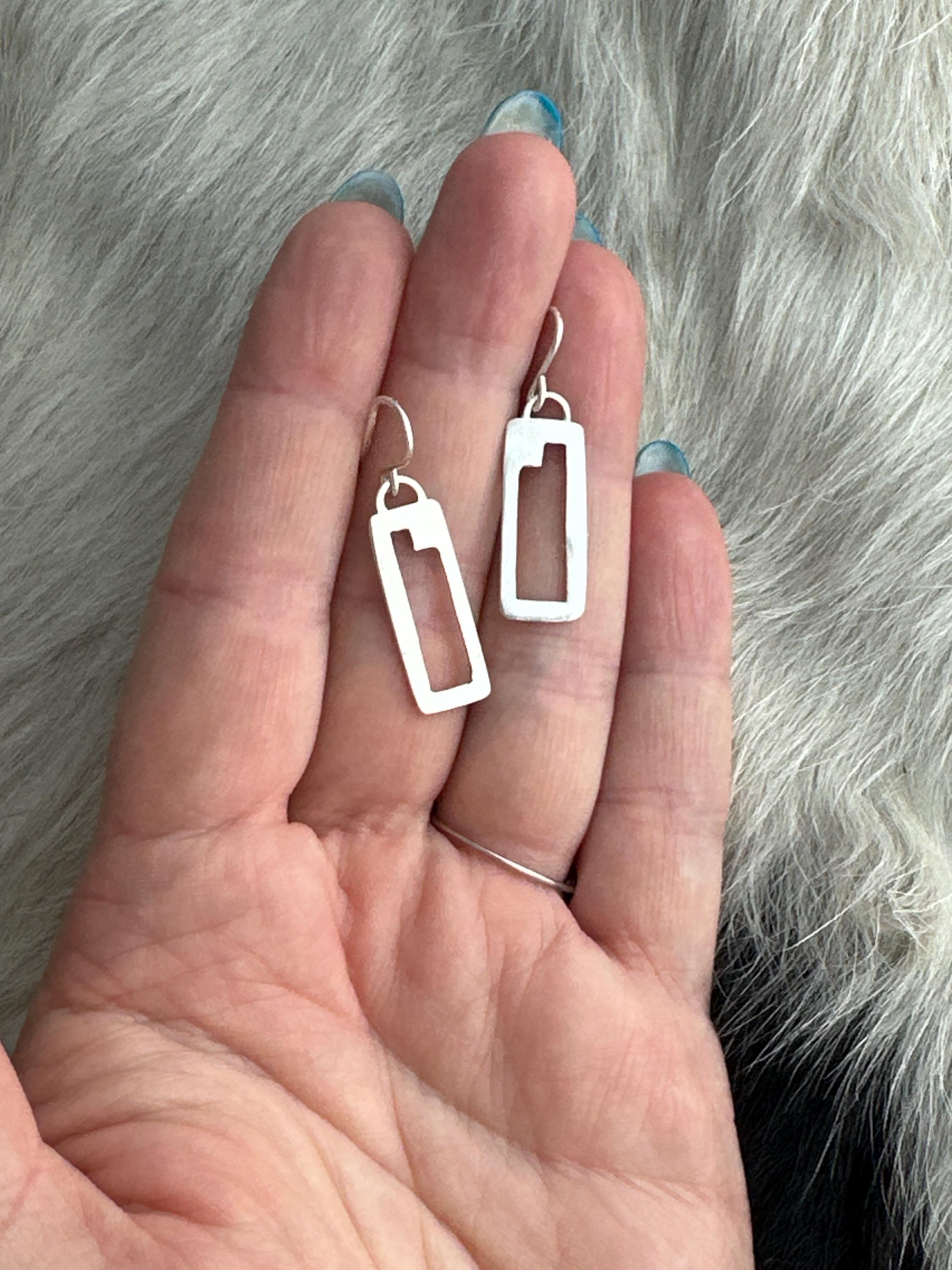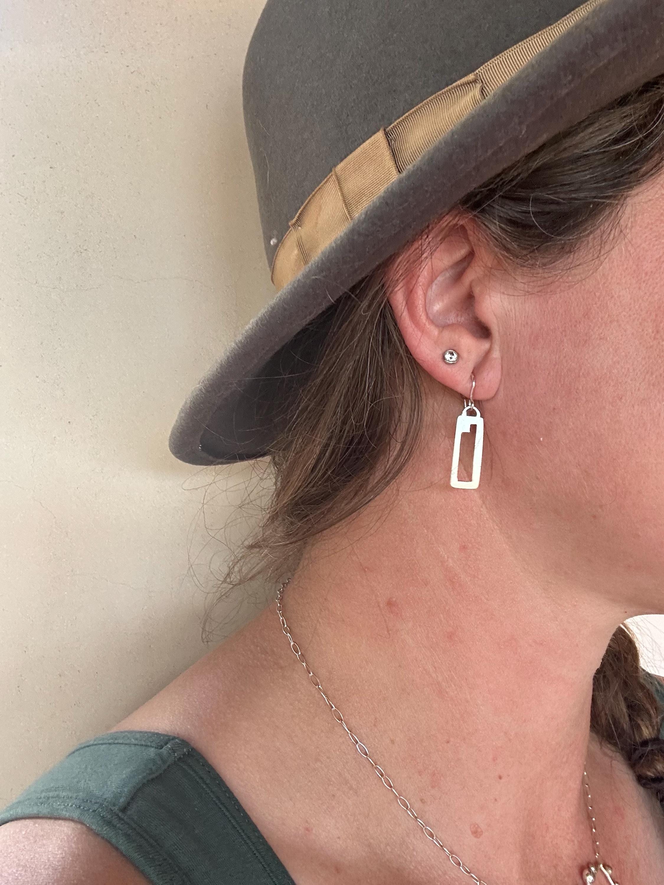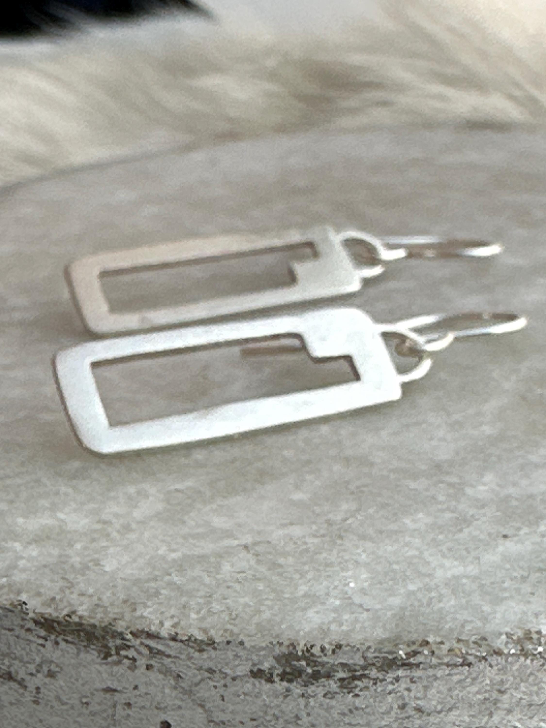 This handmade earring was designed originally by myself and was handcut soldered and filed to its perfection. It is a lightweight earring that is great for everyday wear. I like clean lines, geometric design and a modern appeal, this pair of earrings is all of that.