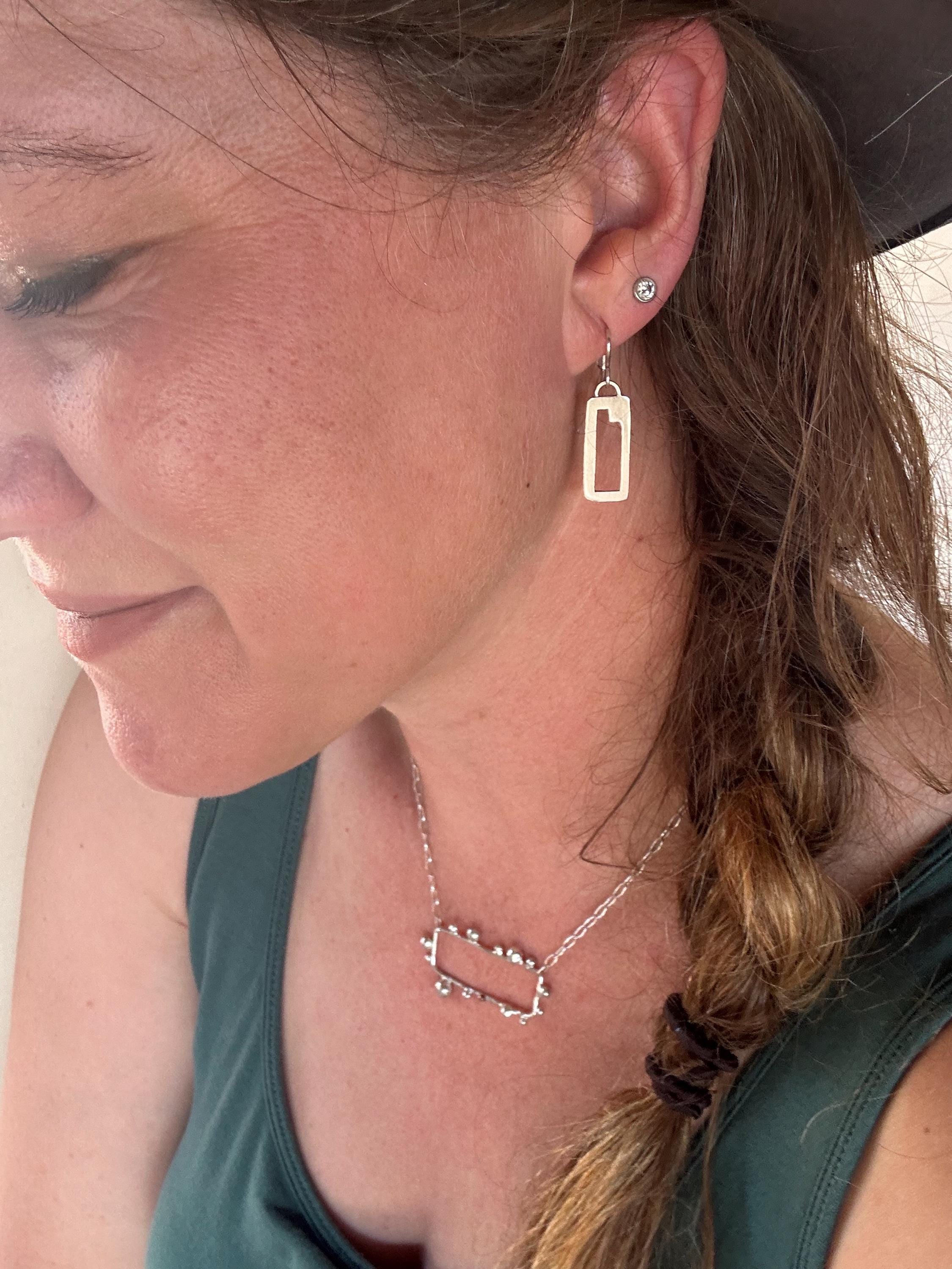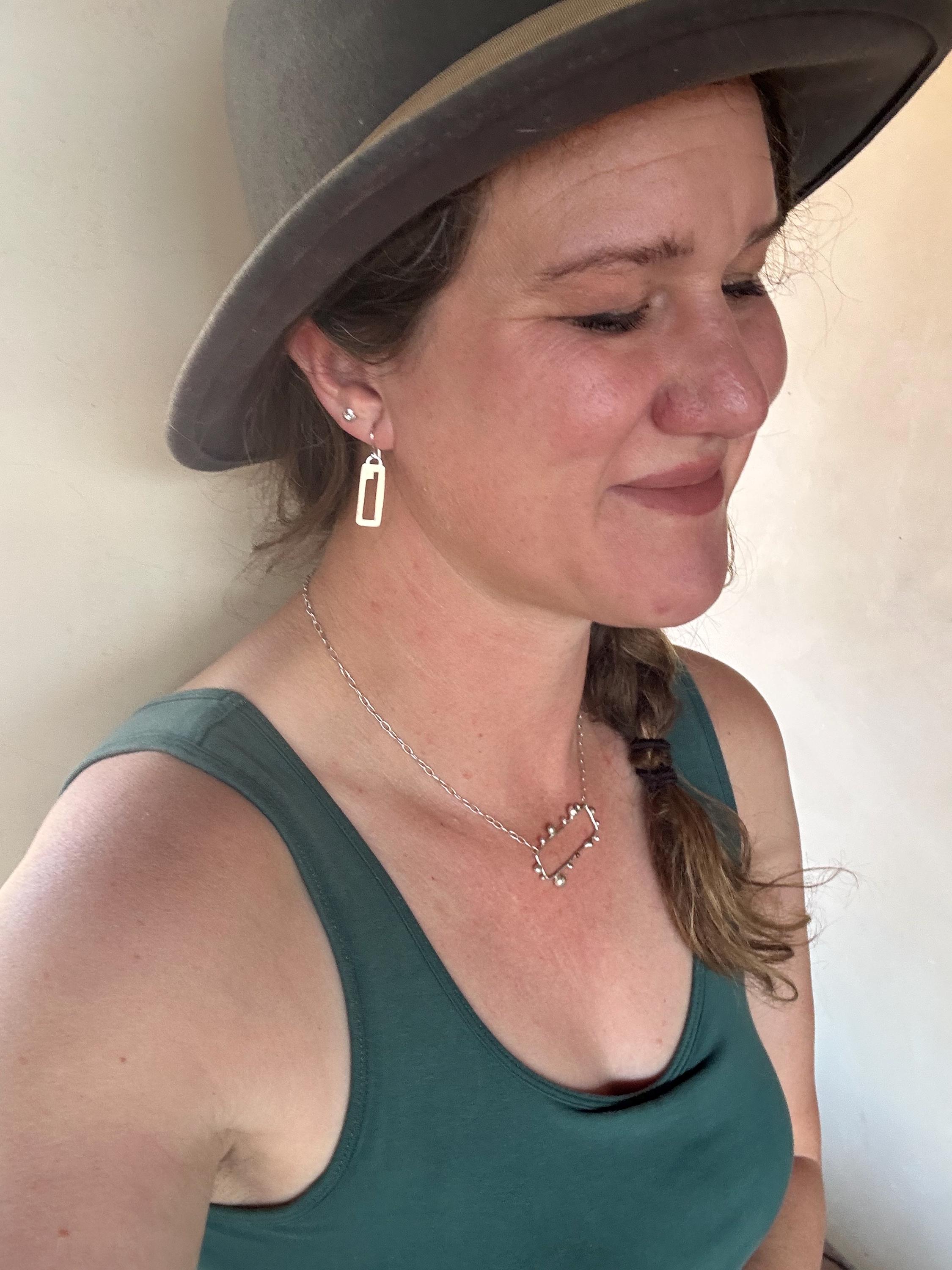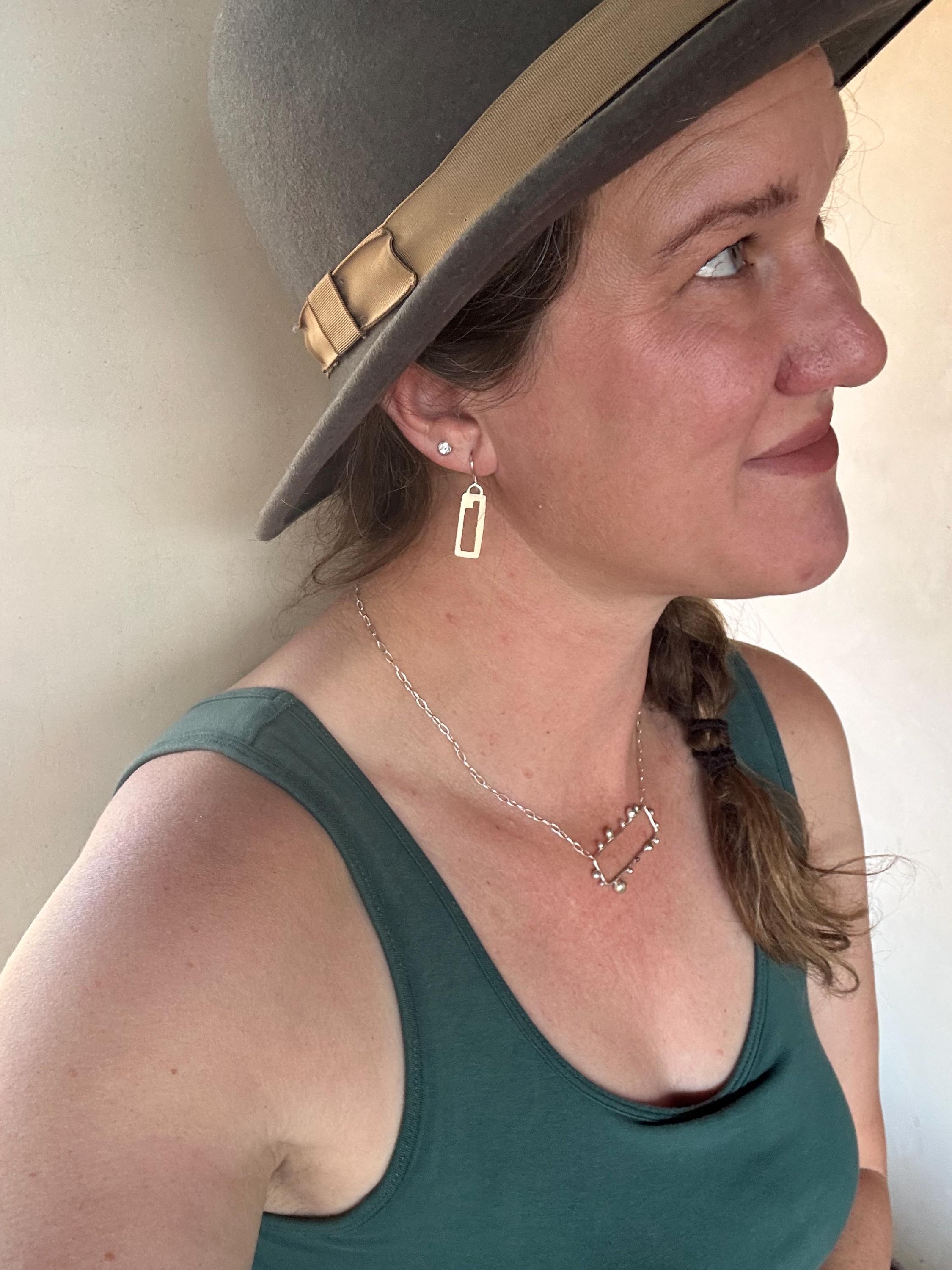 This handmade earring was designed originally by myself and was handcut soldered and filed to its perfection. It is a lightweight earring that is great for everyday wear. I like clean lines, geometric design and a modern appeal, this pair of earrings is all of that.