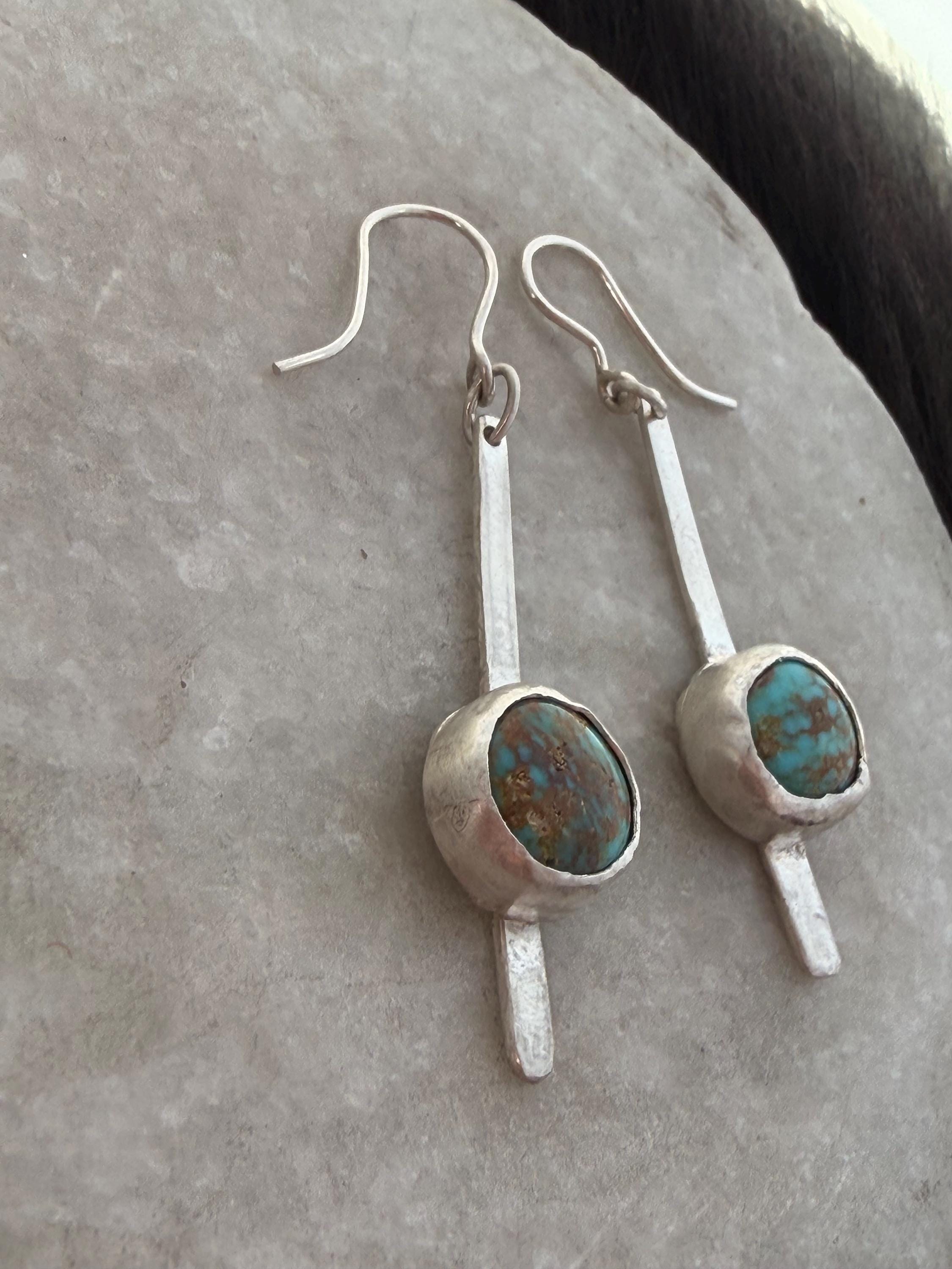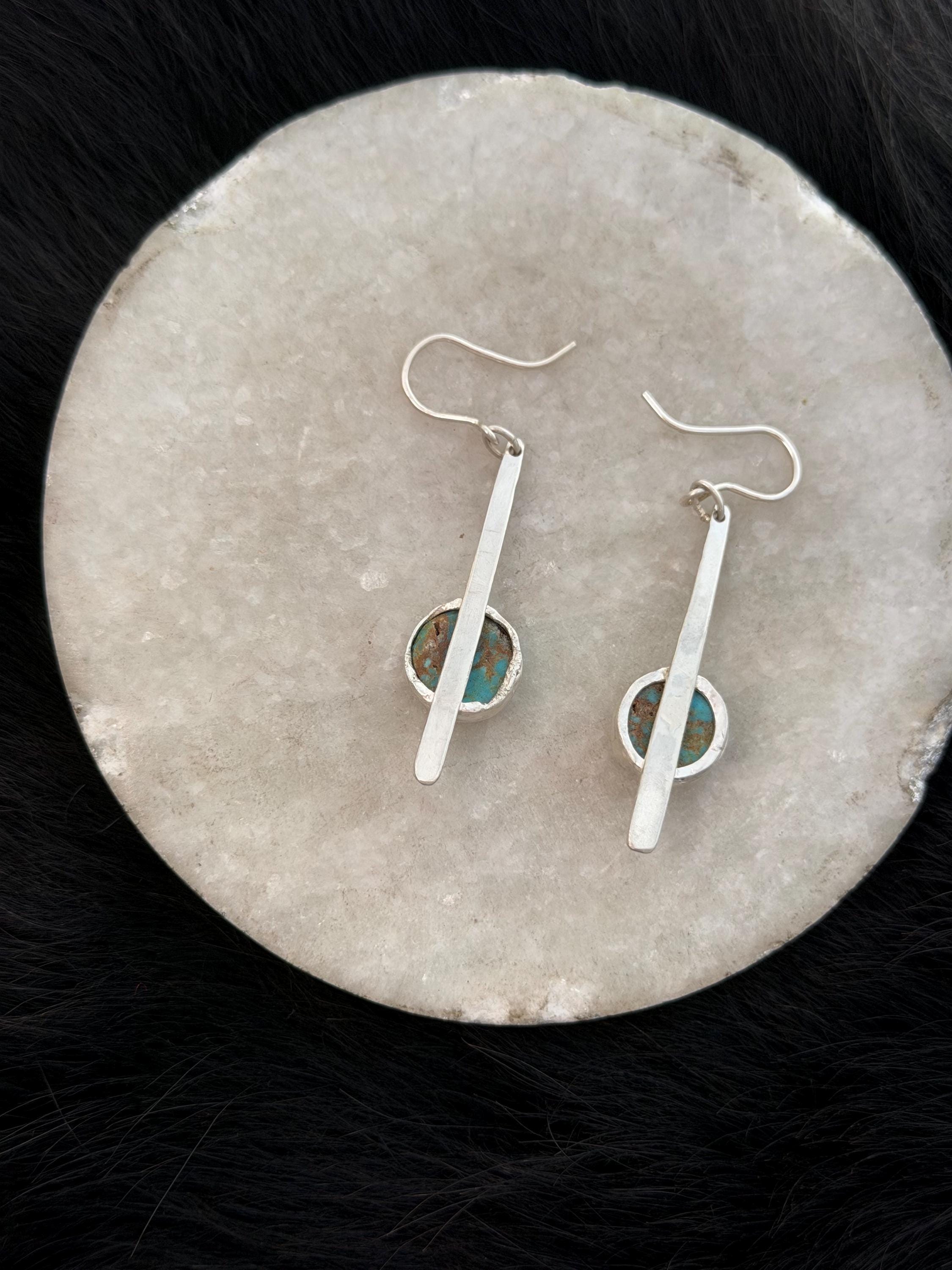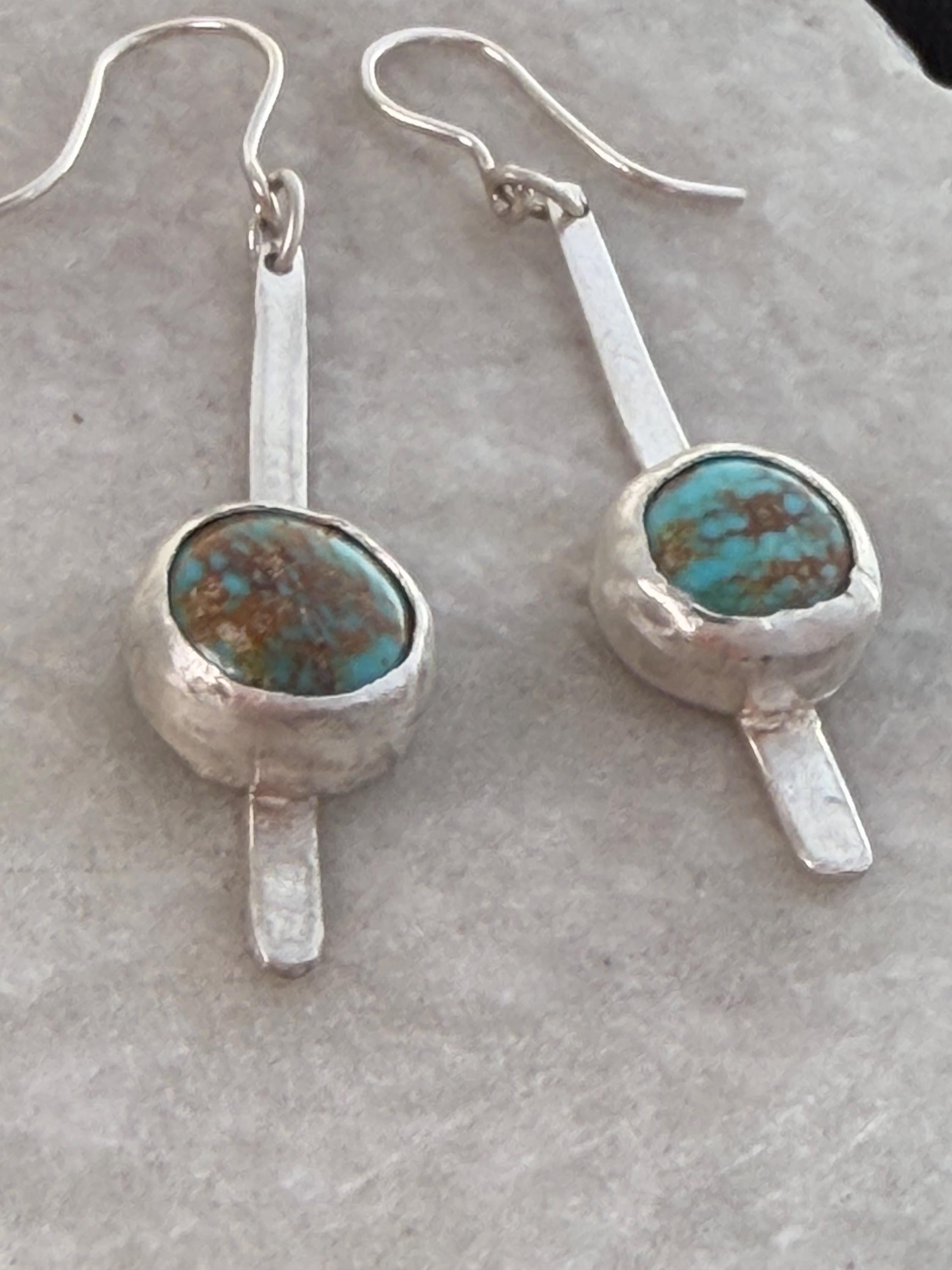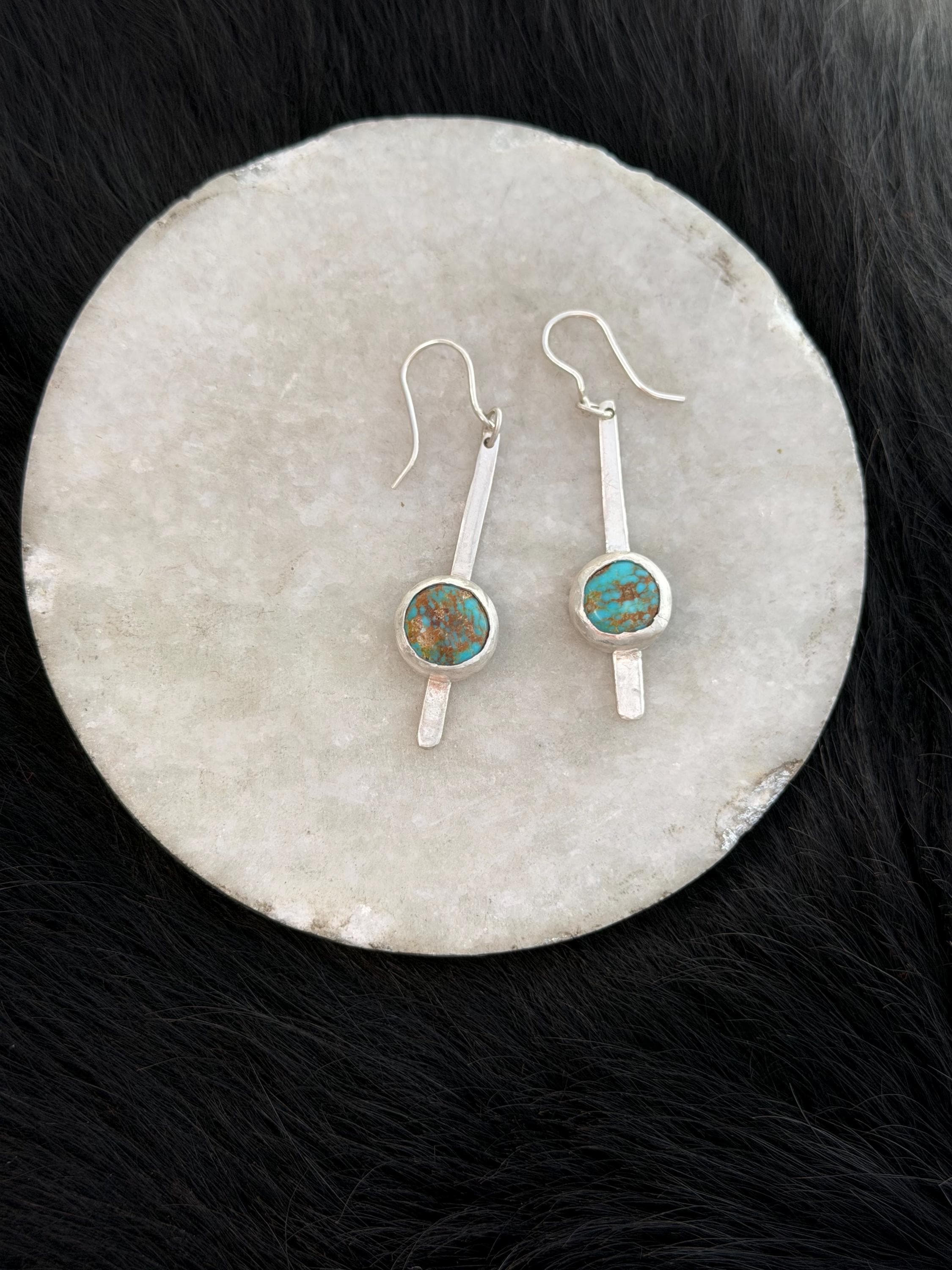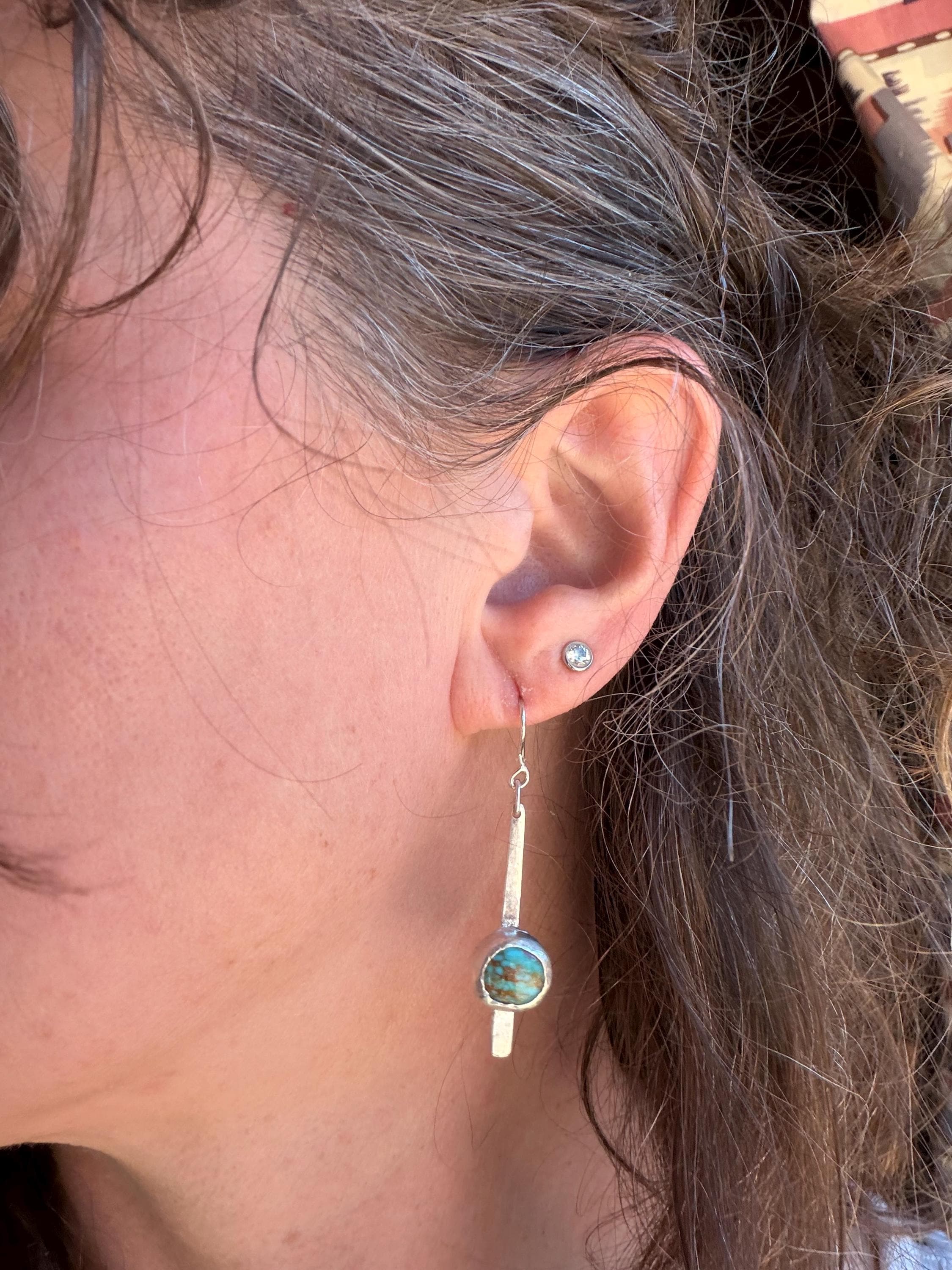 Materials: Sterling silver earwire, sheet metal cut to make a fringe like piece as a baseplate or the stone and fine silver bezel metal