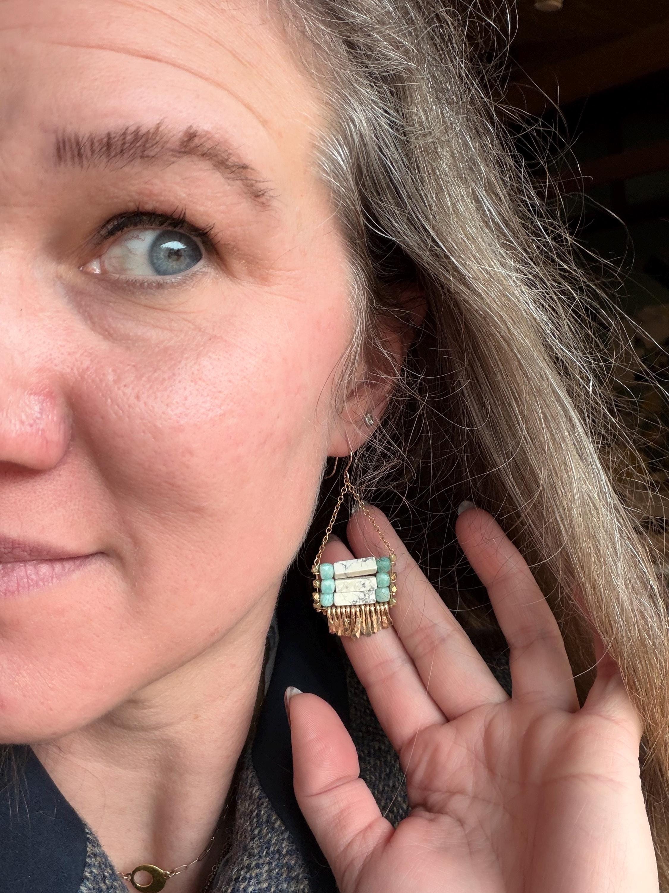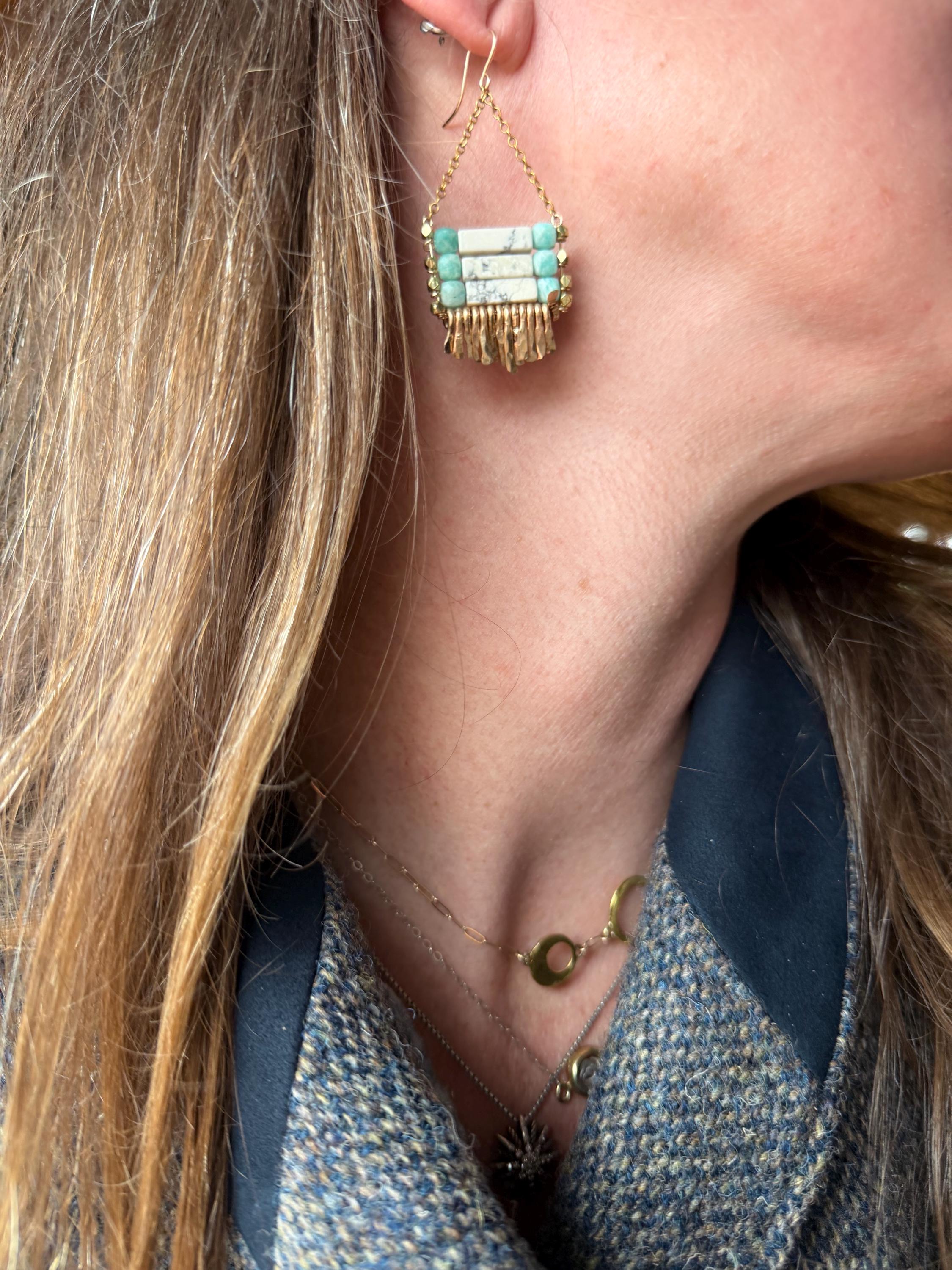The "Carmine" earring is very gift-able and a classic accessory to add a little something special to the every day- that easily goes from day to night and looks with any hair color. They’re light toward medium weighted and have great movement from hand-forged gold fringe.