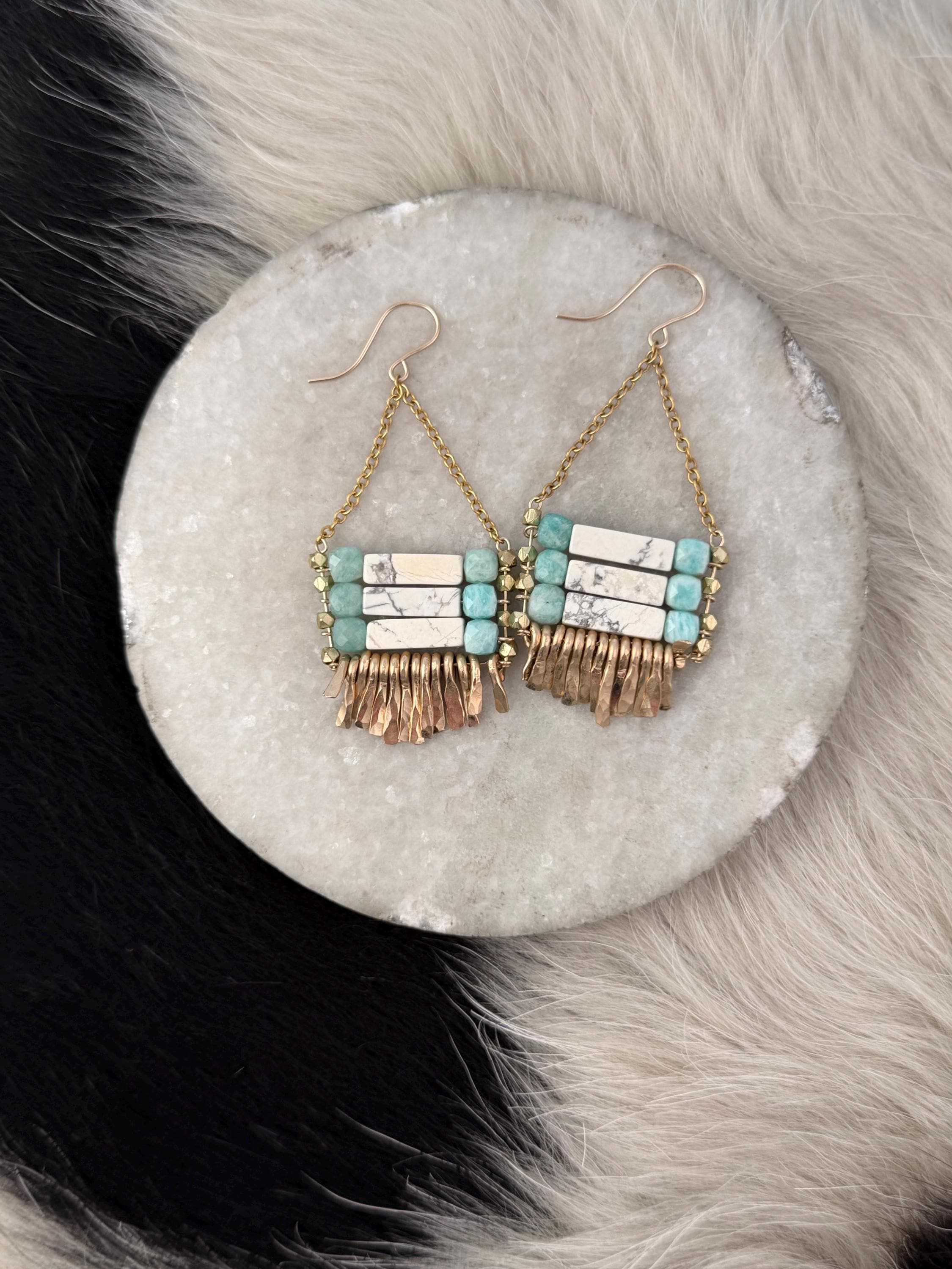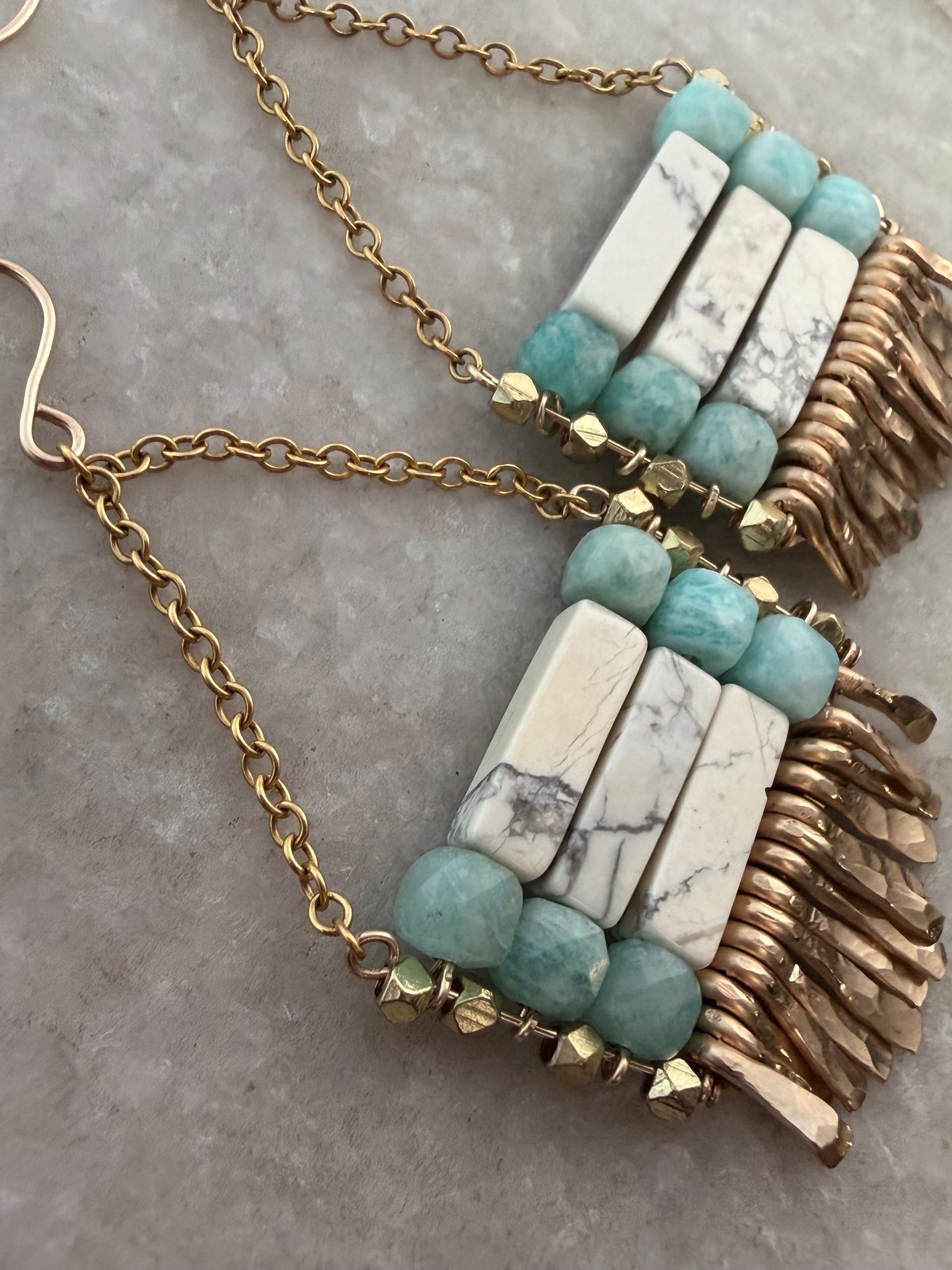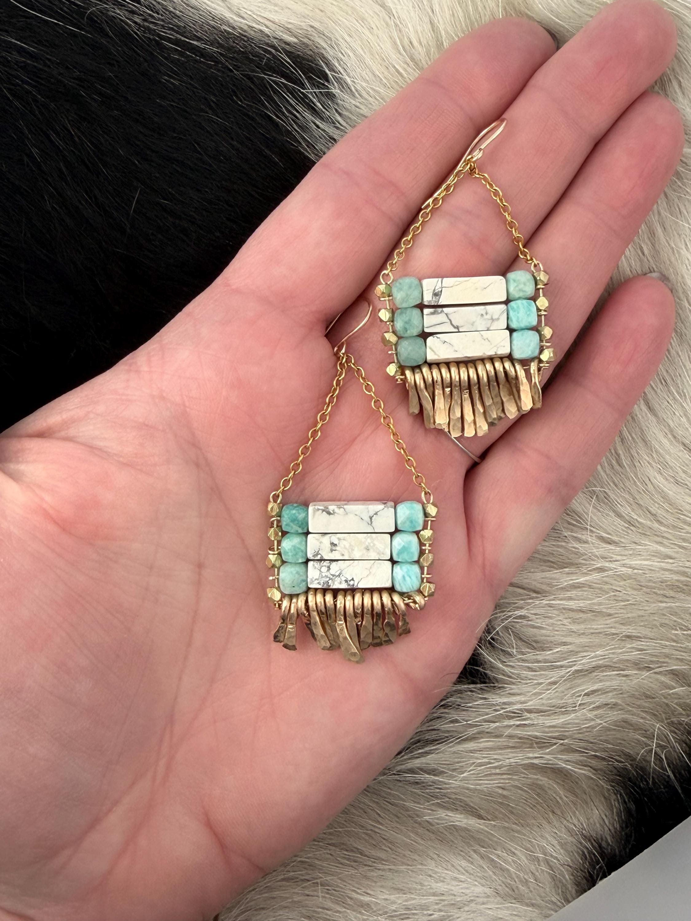 Stone: Howlite, white with grey veins and ;ight blue toned teal colored Amazonite
