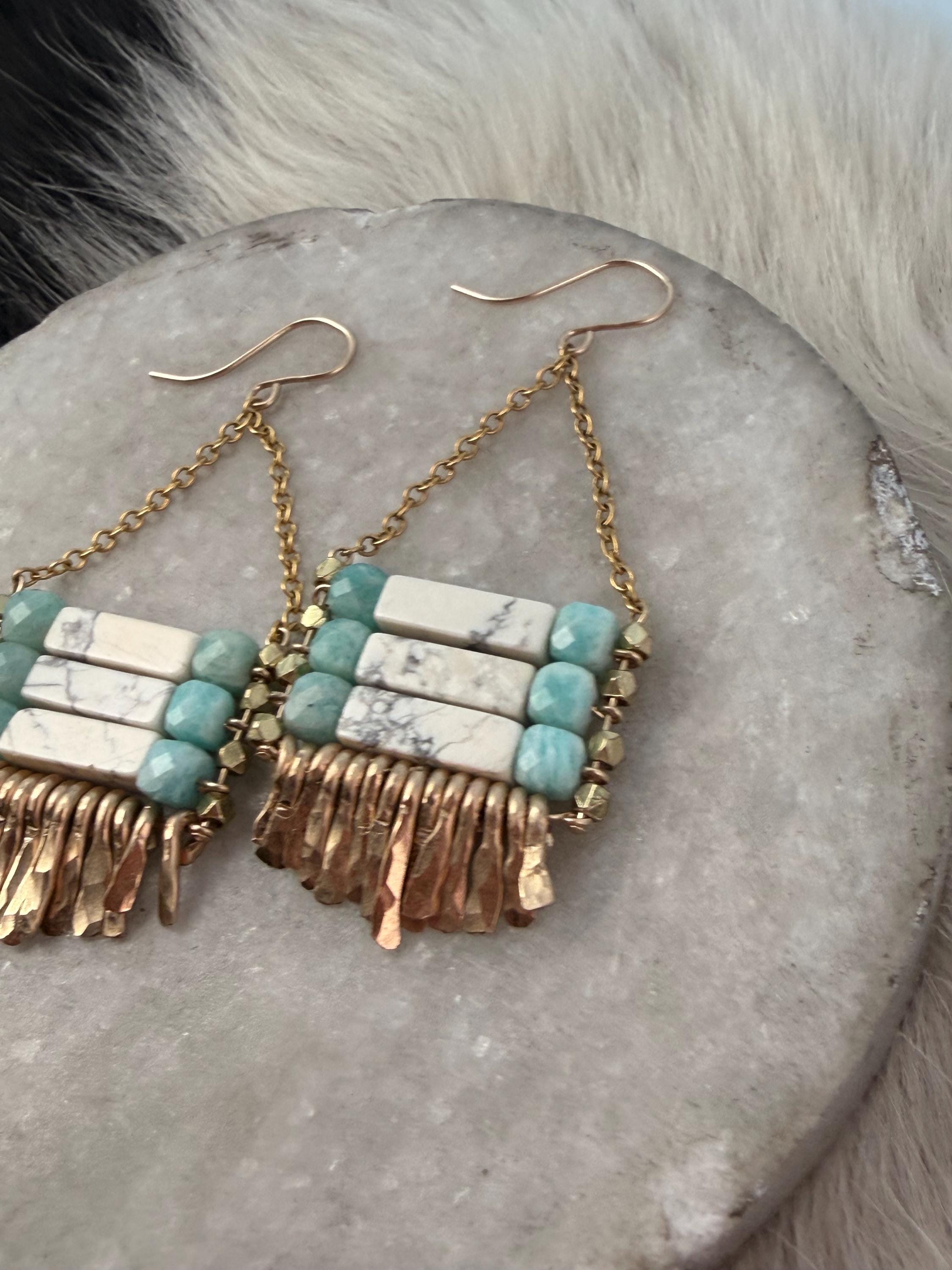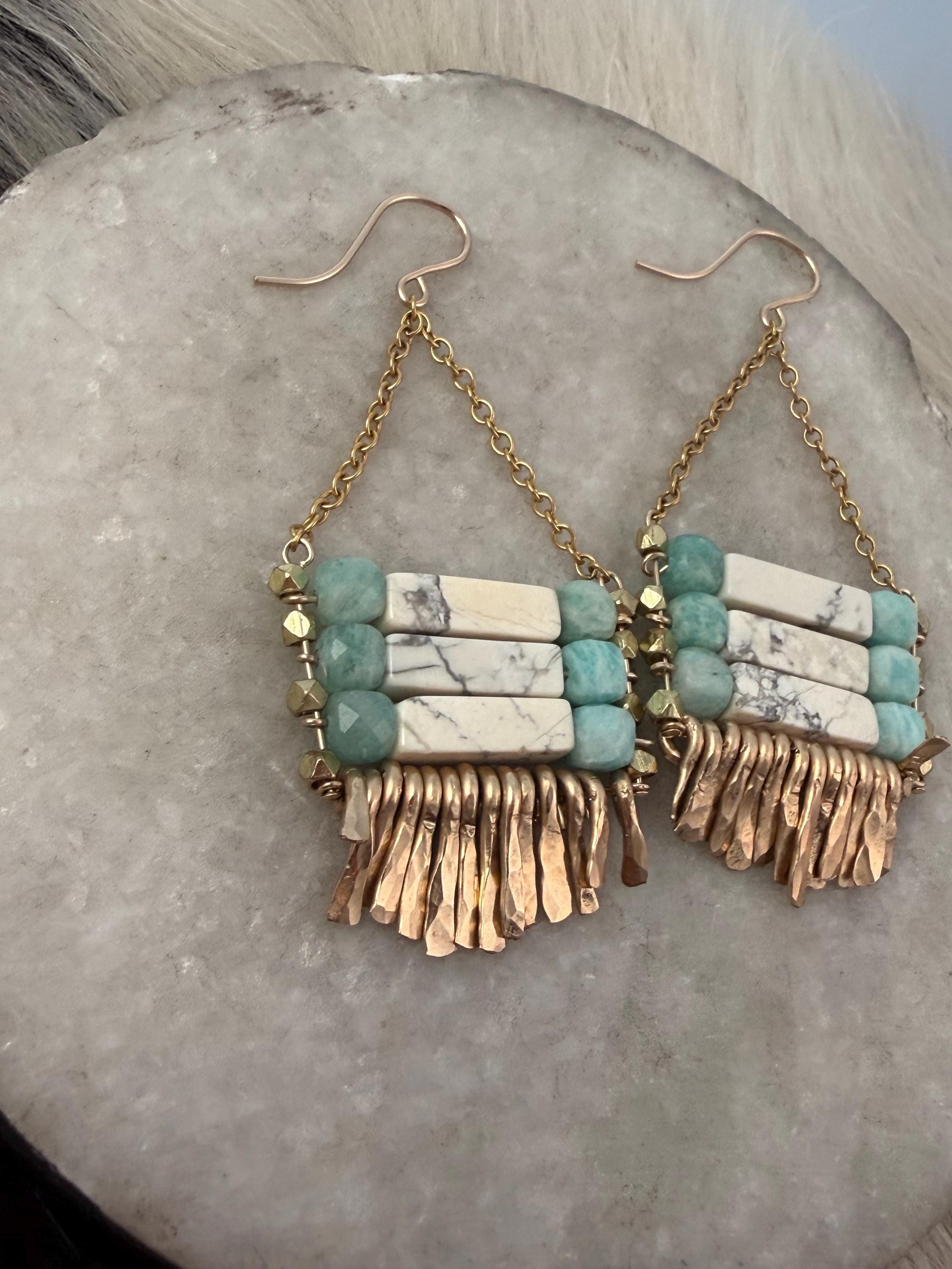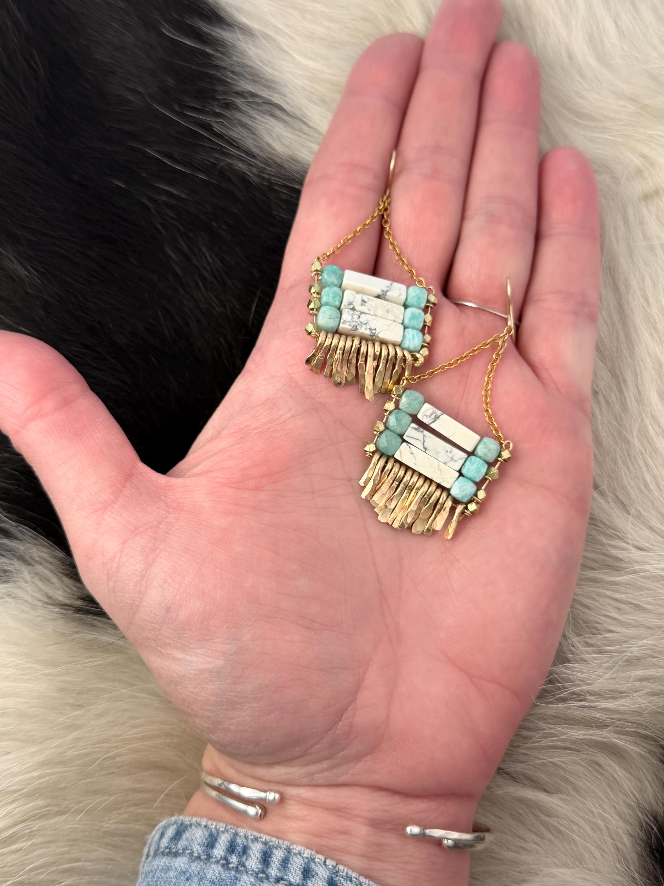 Stone: Howlite, white with grey veins and ;ight blue toned teal colored Amazonite