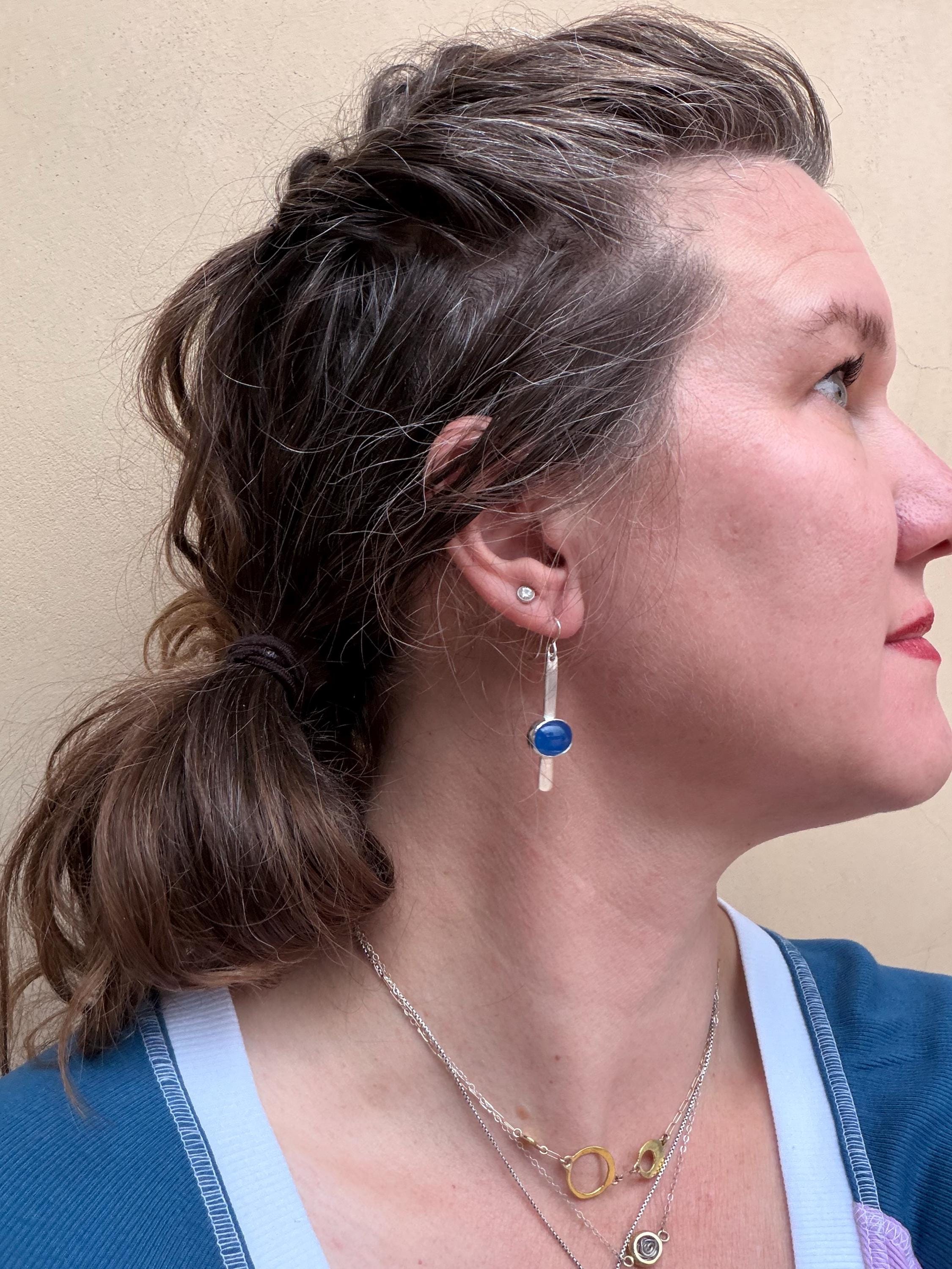 Materials: Sterling silver earwire, sheet metal cut to make a fringe like piece as a baseplate or the citrine stone and fine silver bezel metal