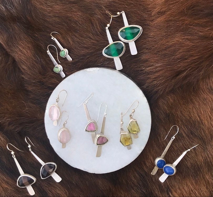 The Dana earring is versatile, an artistic design that lends to many styles, occasions, and outfits. The grey color is warm and resonate for the holiday season. The irregular shape of each 6 carat Smokey grey quartz is what inspired me to create these earrings and what gives them character.
