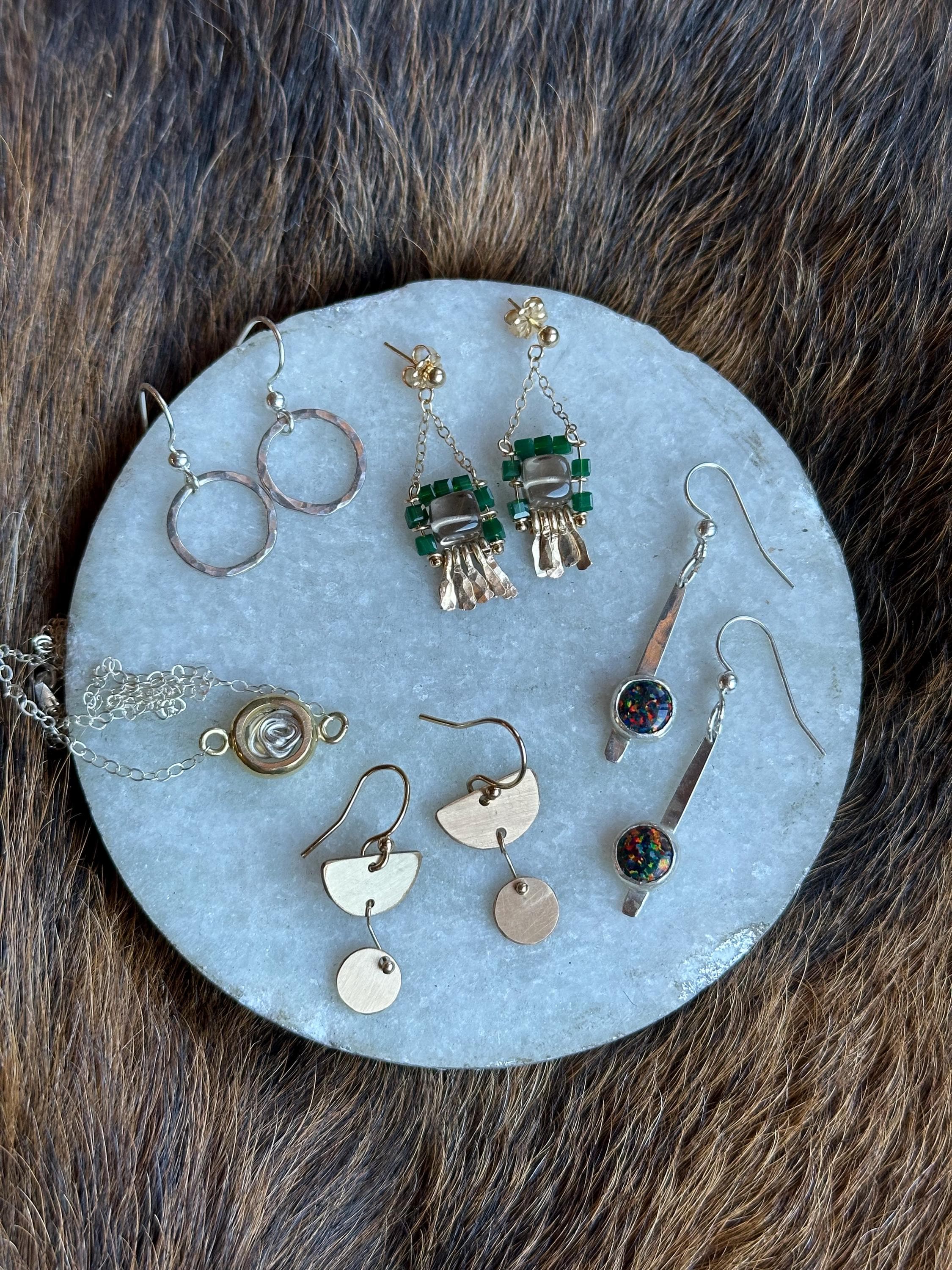 Square Colored Jewelry is a micro business. Alicia is the owner, designer and jeweler creating designs by hand and inspired by Modern Art, Art Deco design and geometric shapes. Metalwork is the focus, and premium materials are used.