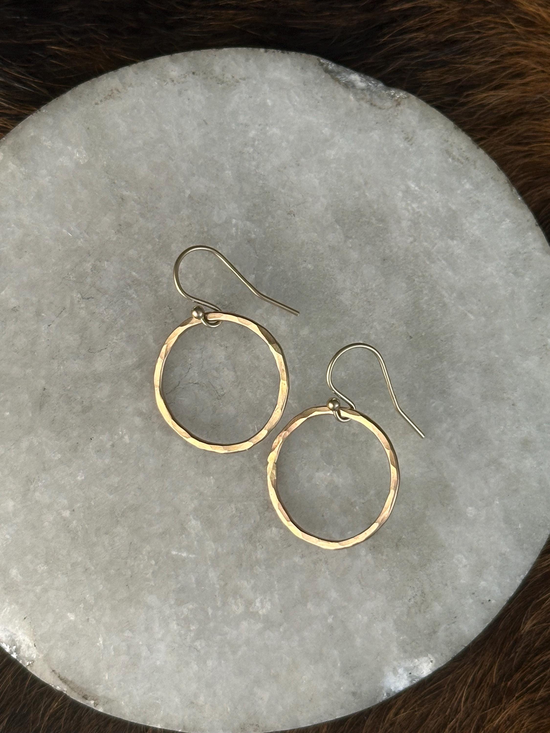 These earrings are made of 18 gauge wire, Gold fill wire and lightly forged with a brushed finish.