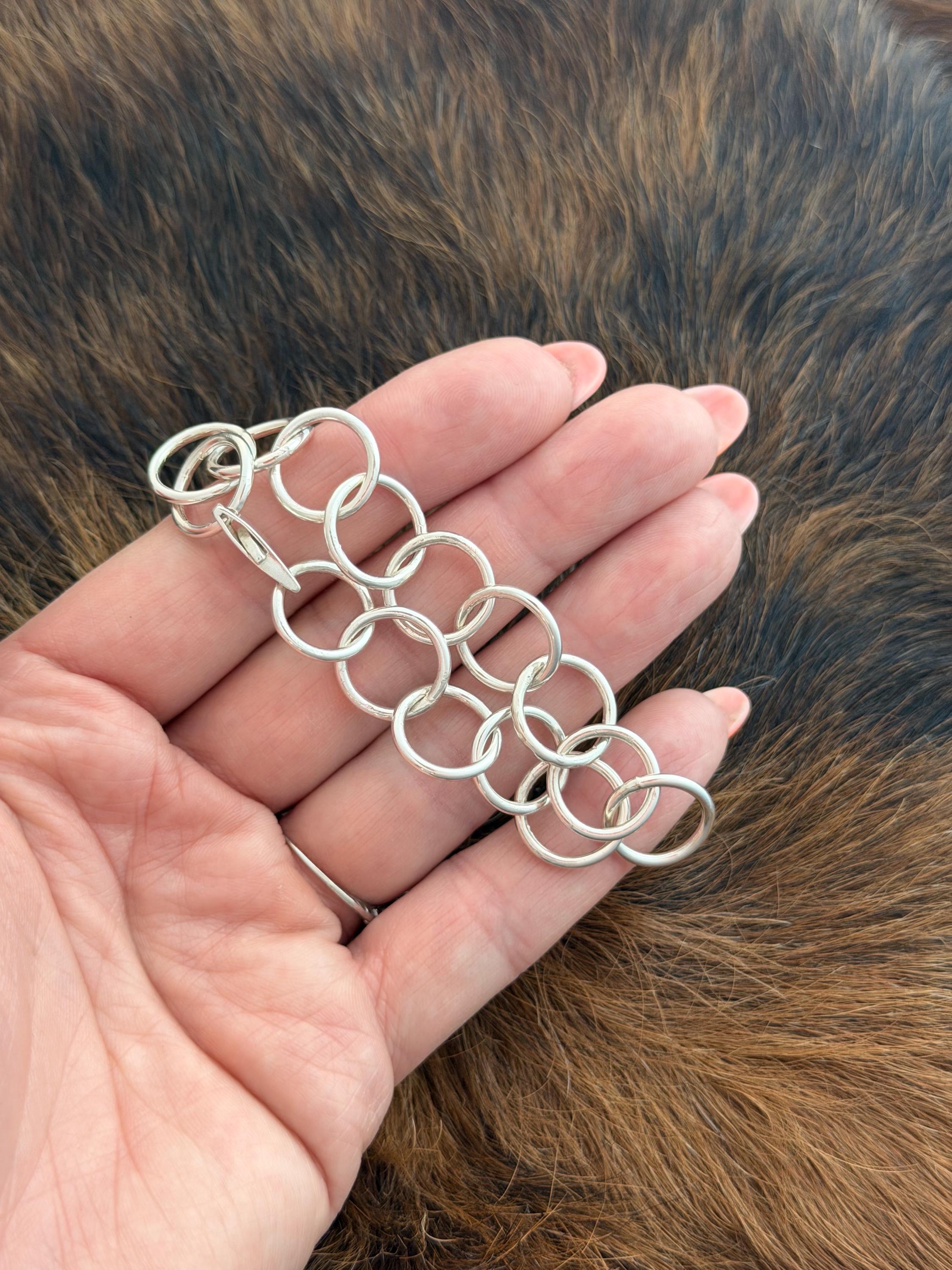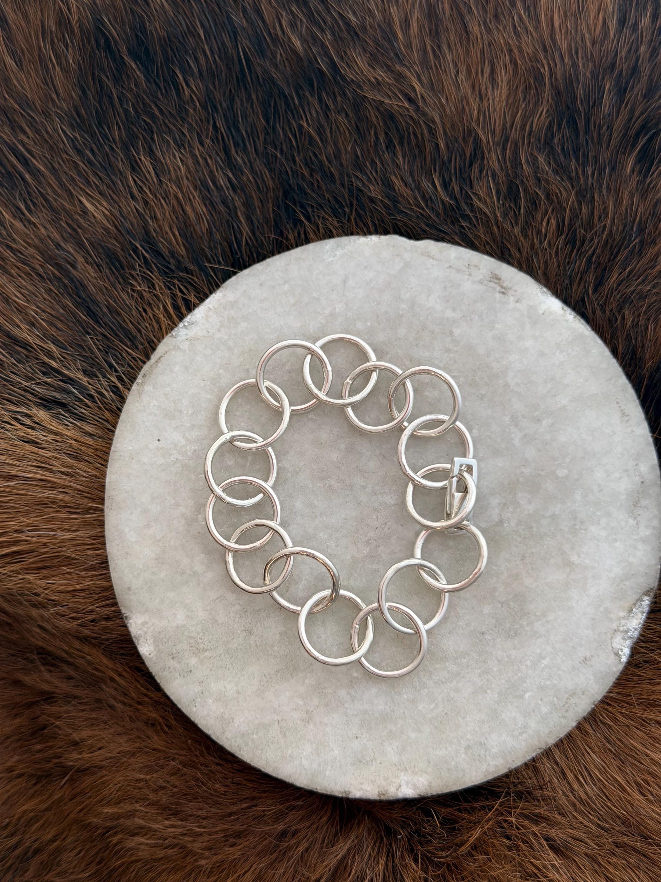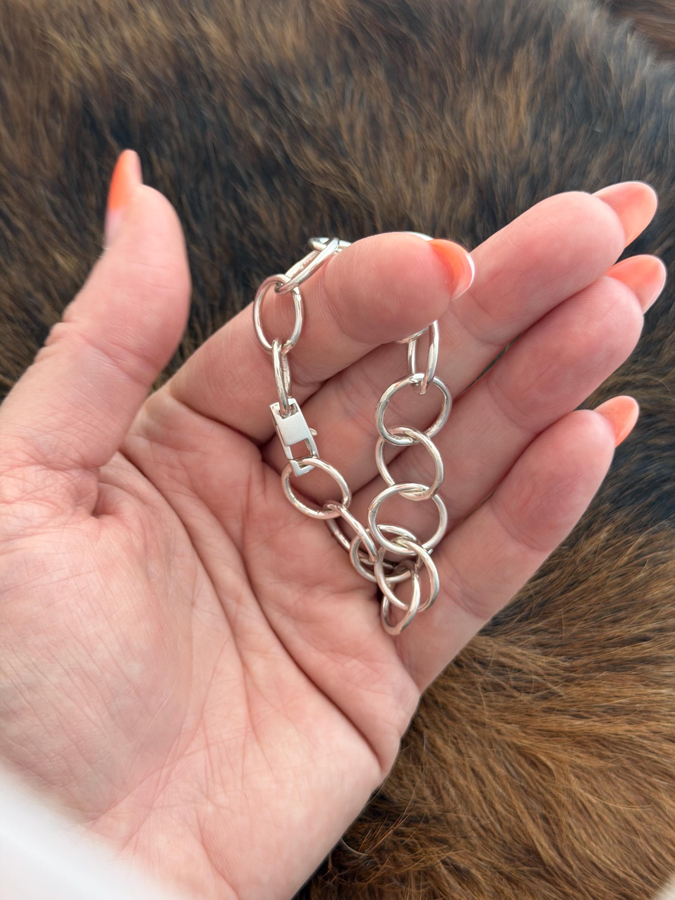 Alicia bracelet 1/2 inch link circle sterling silver metal bracelet with toggle clasp closure